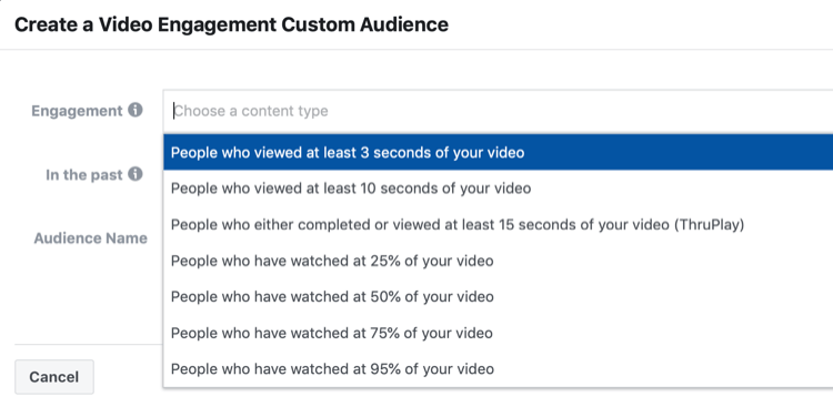 投放广告,并了解到客户和潜在客户的行为后,对warm受众进行细分。举个例子,对于视频广告,按照用户观看视频的时长来细分,分别是观看了25%、50%、50%、75%,以及100%的视频。